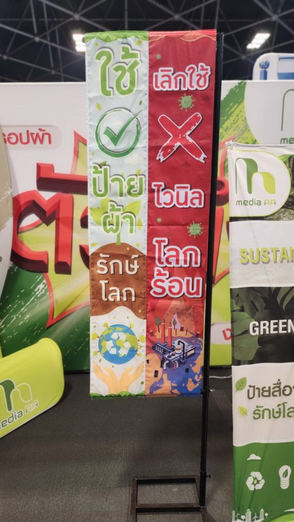 ป้ายธงผ้าจากวัสดุรีไซเคิล